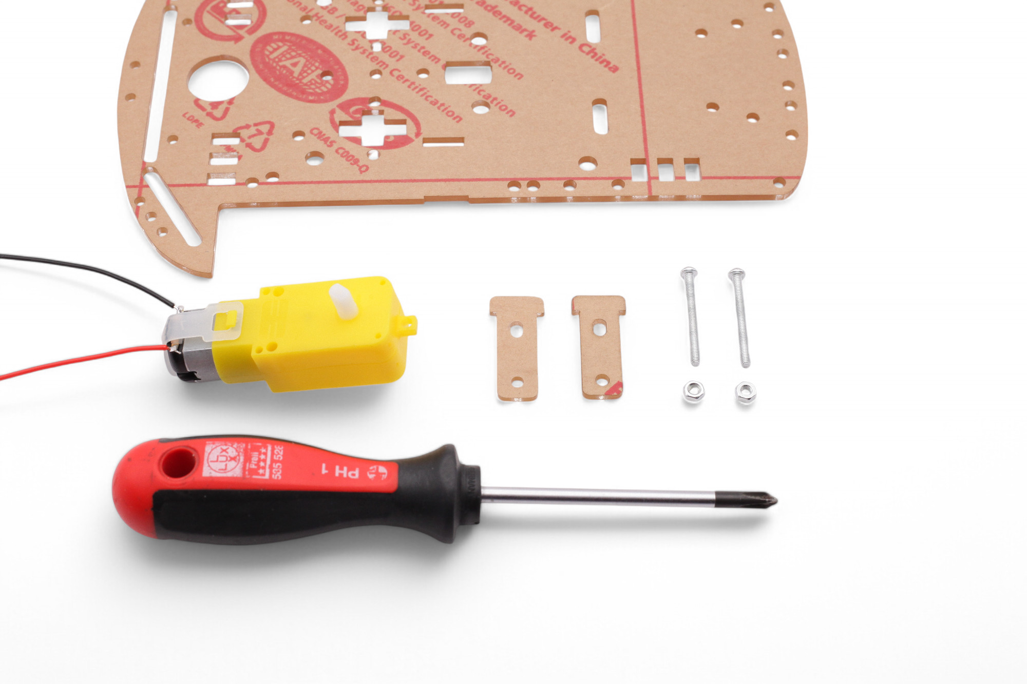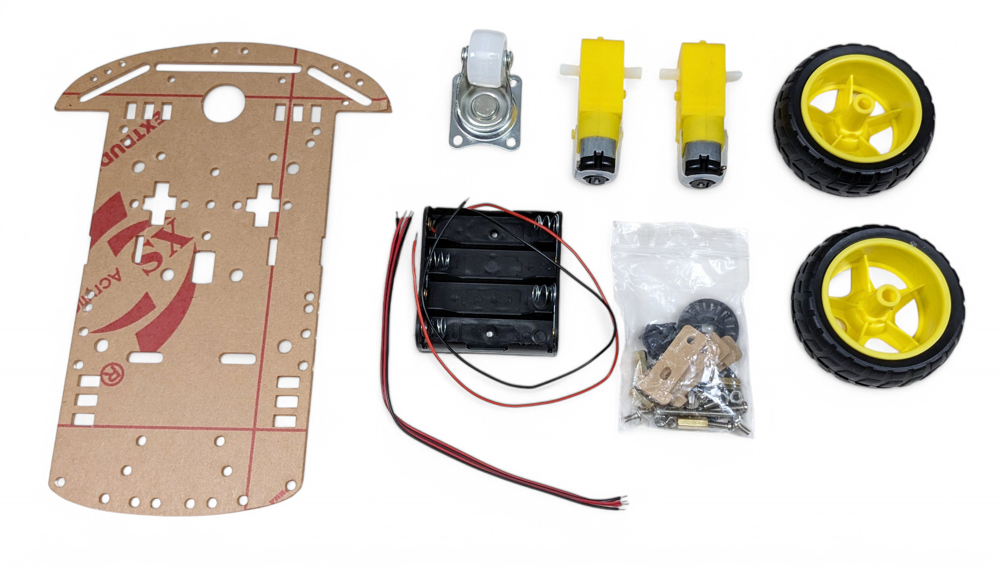 Für den Zusammenbau des Fahrgestells brauchst du folgende Teile: