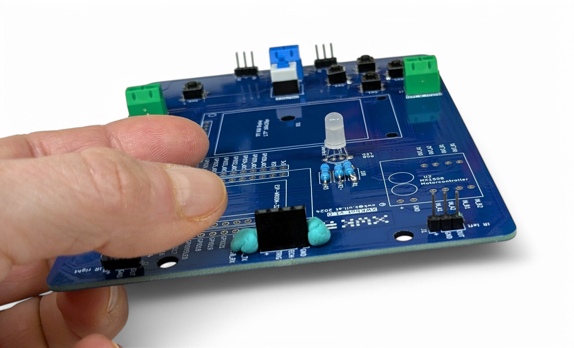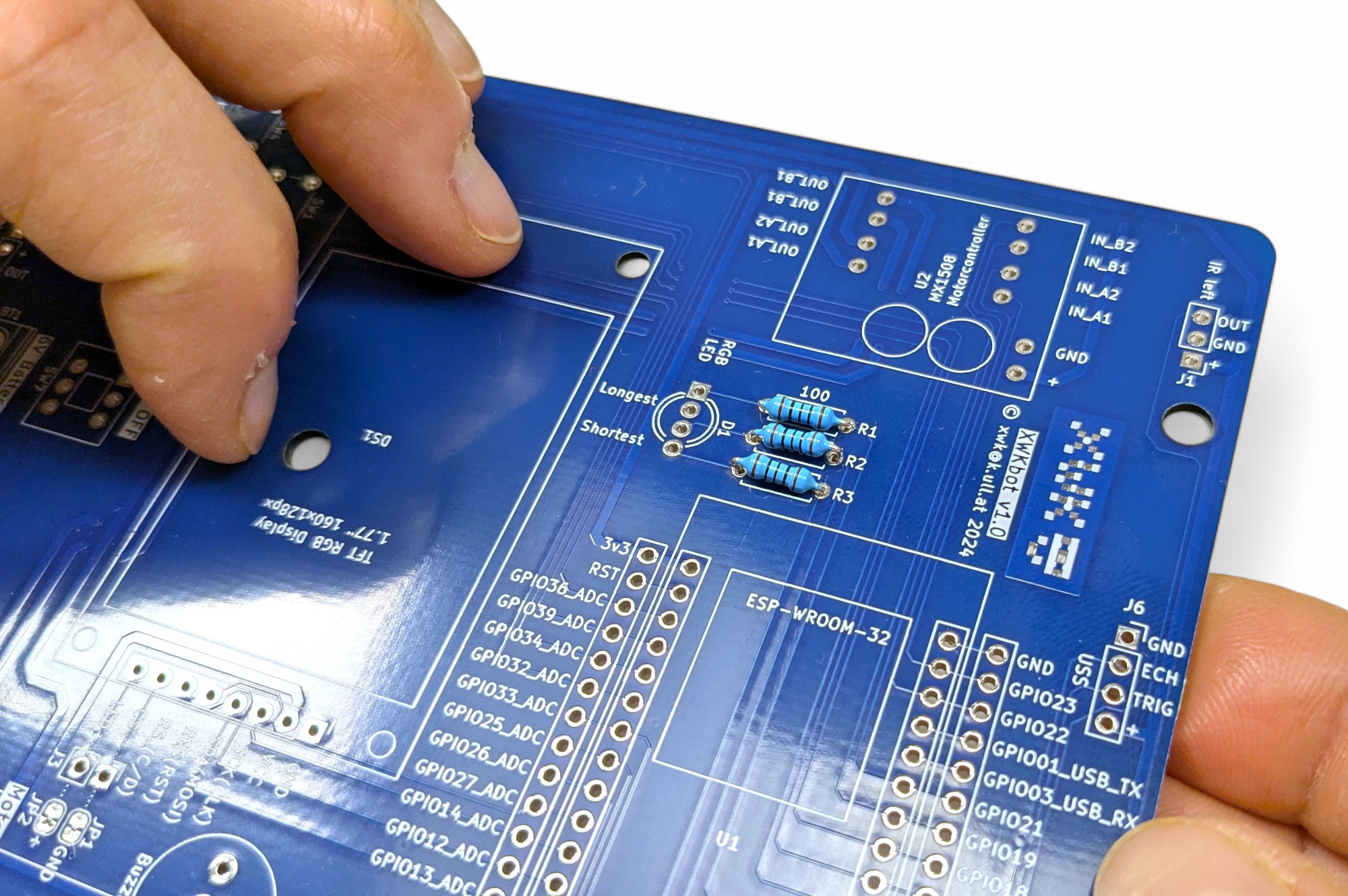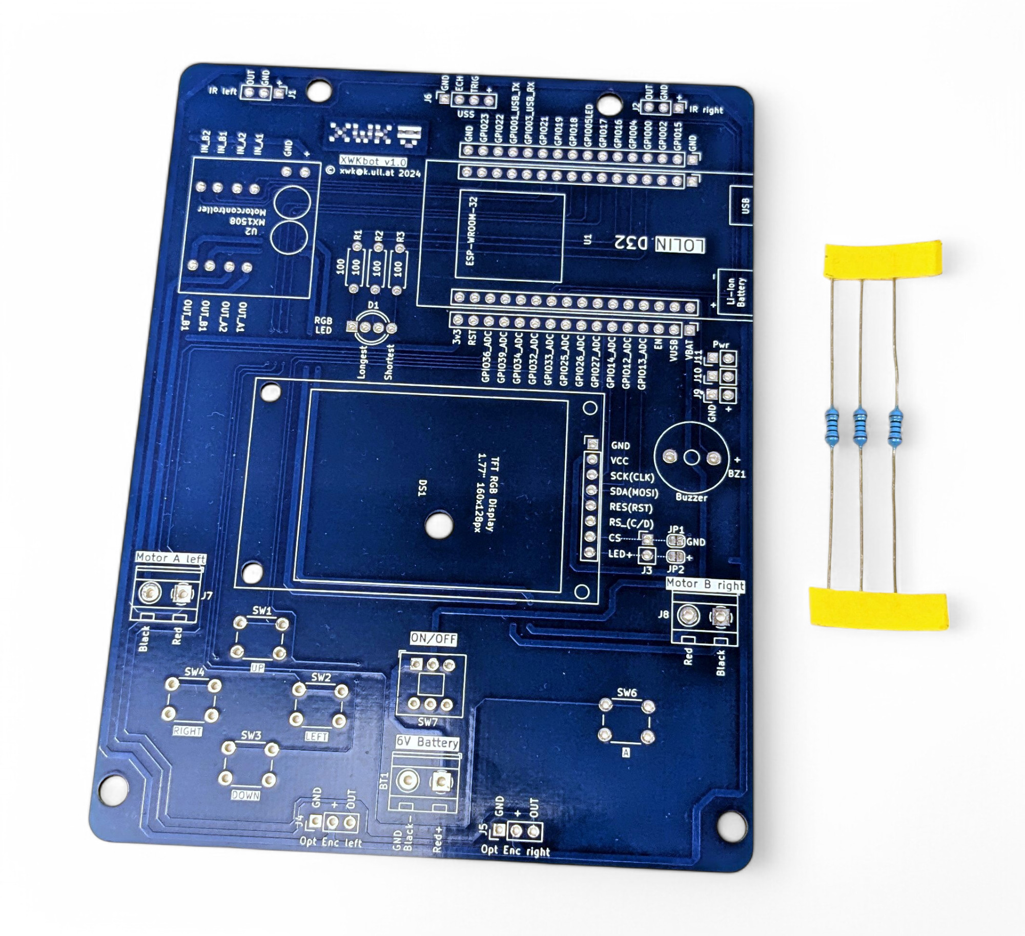 Der Pro-Tipp für den Platinen-Zusammenbau: beginne mit den niedrigsten Bauteilen. So kannst du die Platine umdrehen, ohne dass die Bauteile herausfallen. Die niedrigsten Bauteile beim XWK-Bot sind die Widerstände.