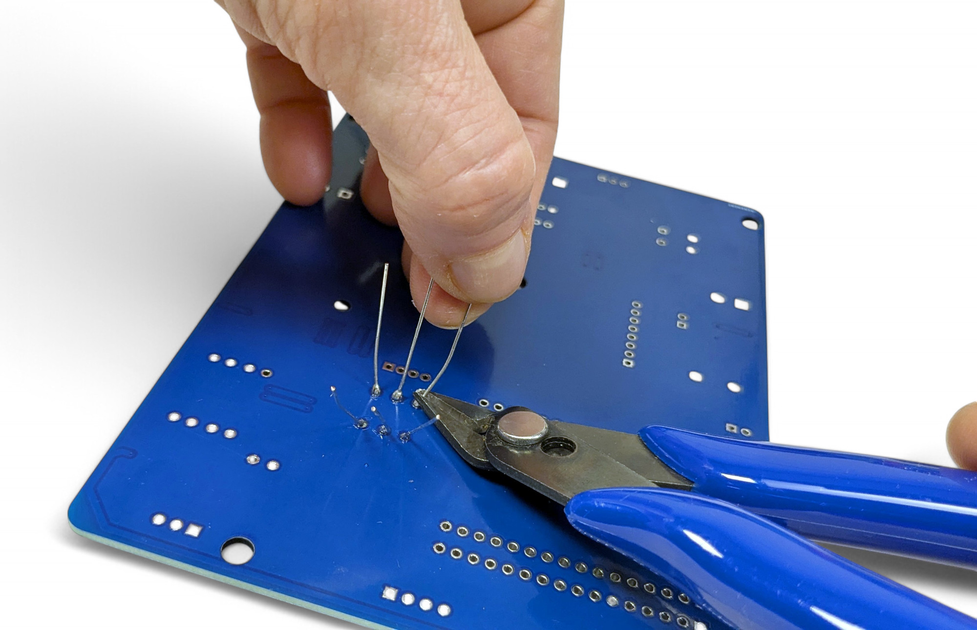 Zwicke nun mit dem Seitenschneider die überstehnden Drähte direkt über der Lötstelle ab: