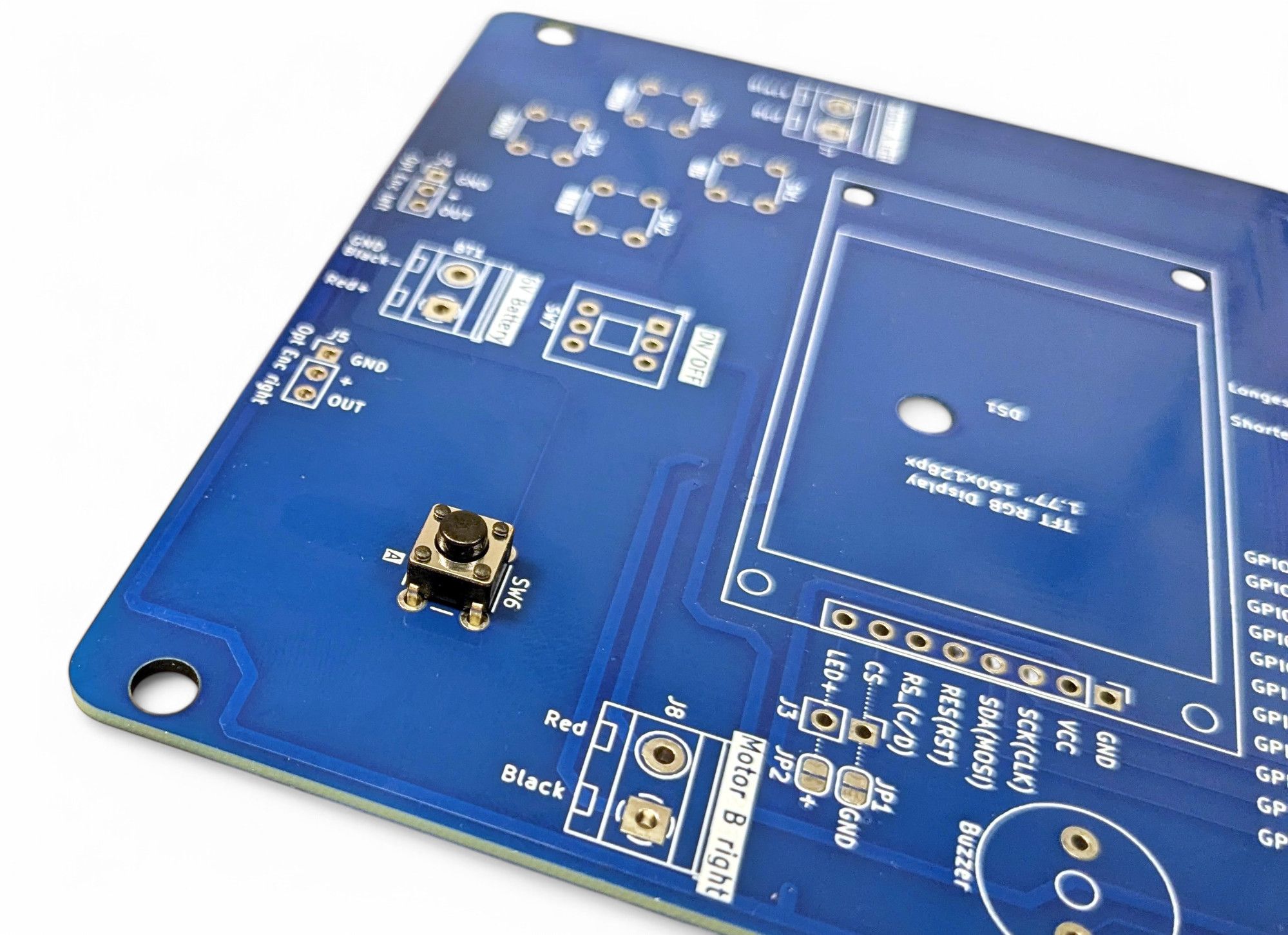 Auch unser kleiner Bildschirm benötigt eine weibliche Buchsenleiste, aber diesmal mit 8 Kontakten. Suche die richtige Stelle für den Display-Anschluss in der Mitte der Platine:
