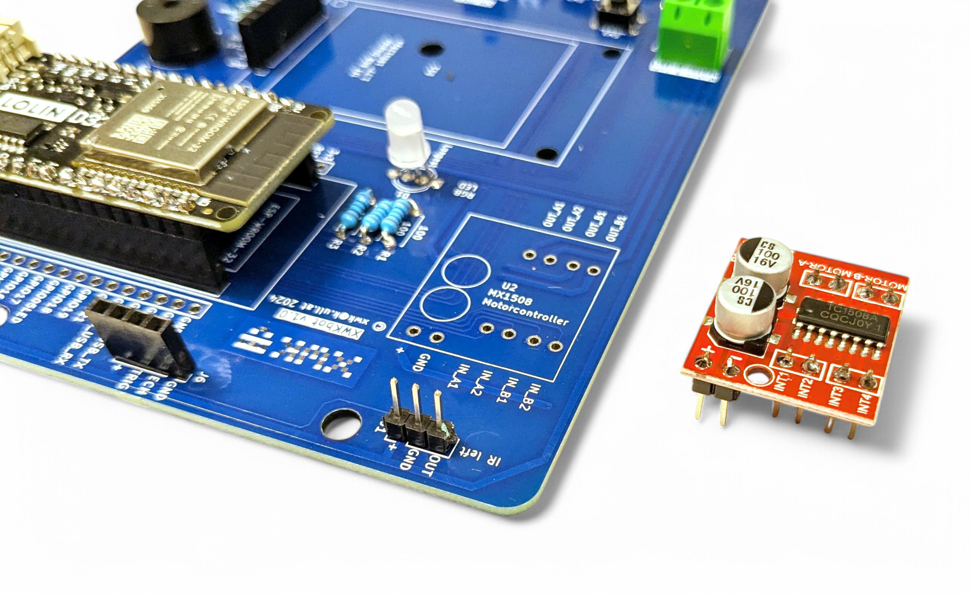 Zuletzt löten wir noch den Motor-Controller ein. Er wird benötigt um die Motoren vom XWK-Bot anzusteuern: