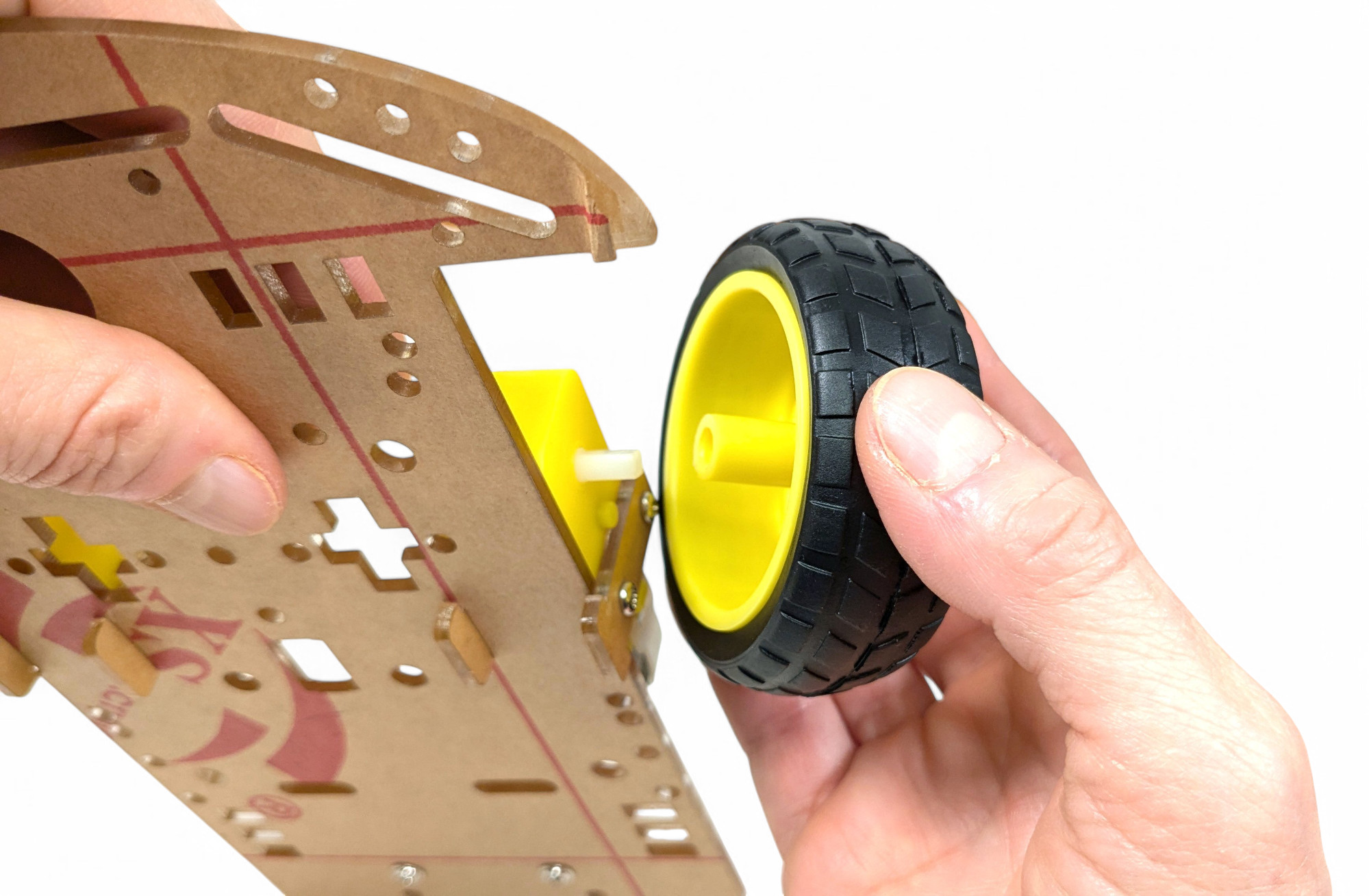 Stecke nun die großen Räder auf die Motoren: