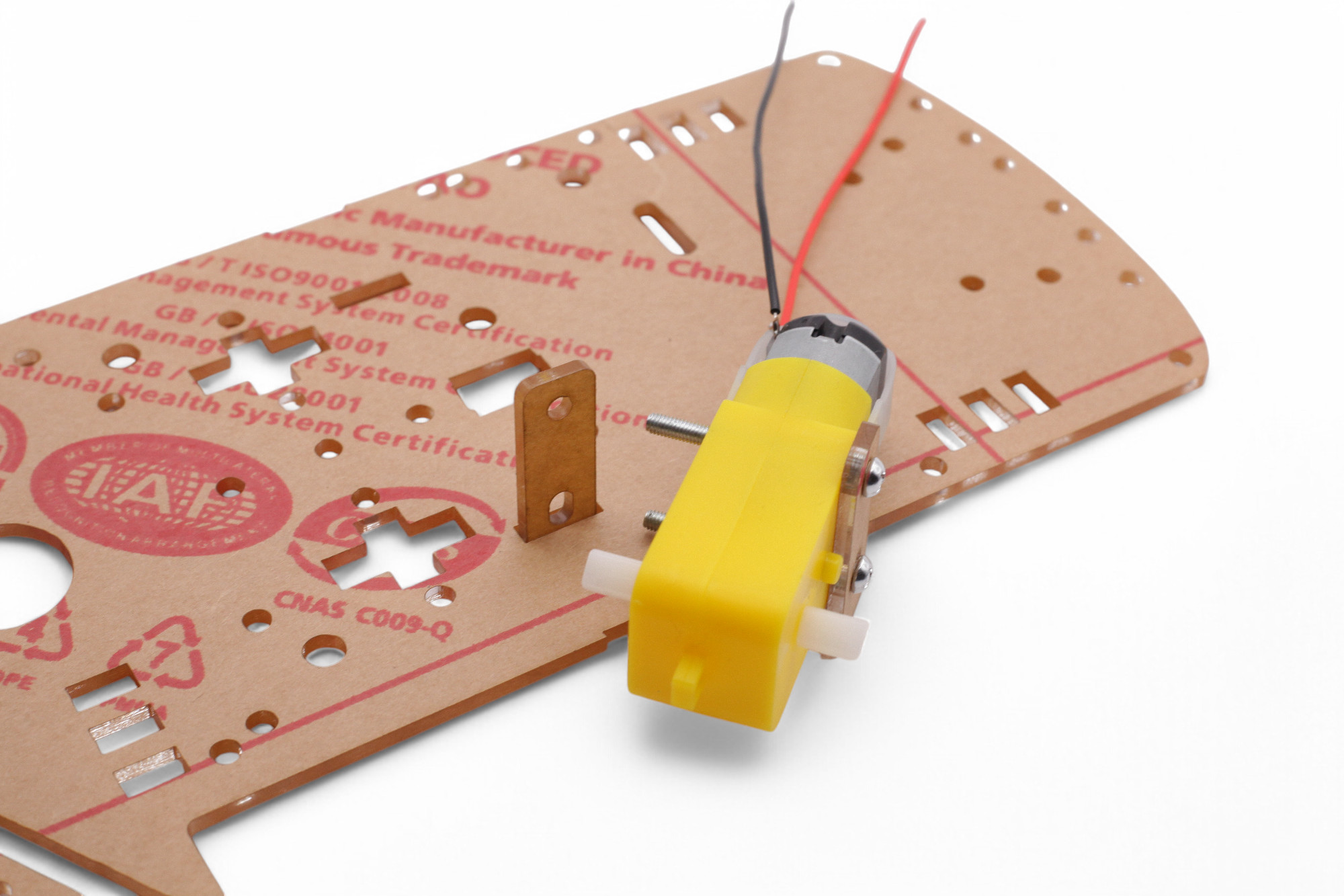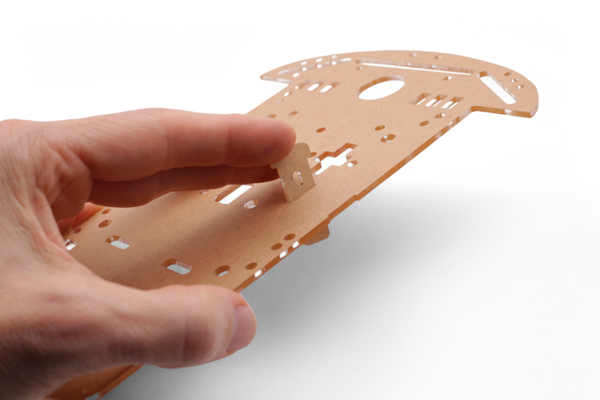 Lege nun die Halterung für die Infrarot-Sensoren auf die Grundplatte. Es passt wie ein Puzzle zusammen: