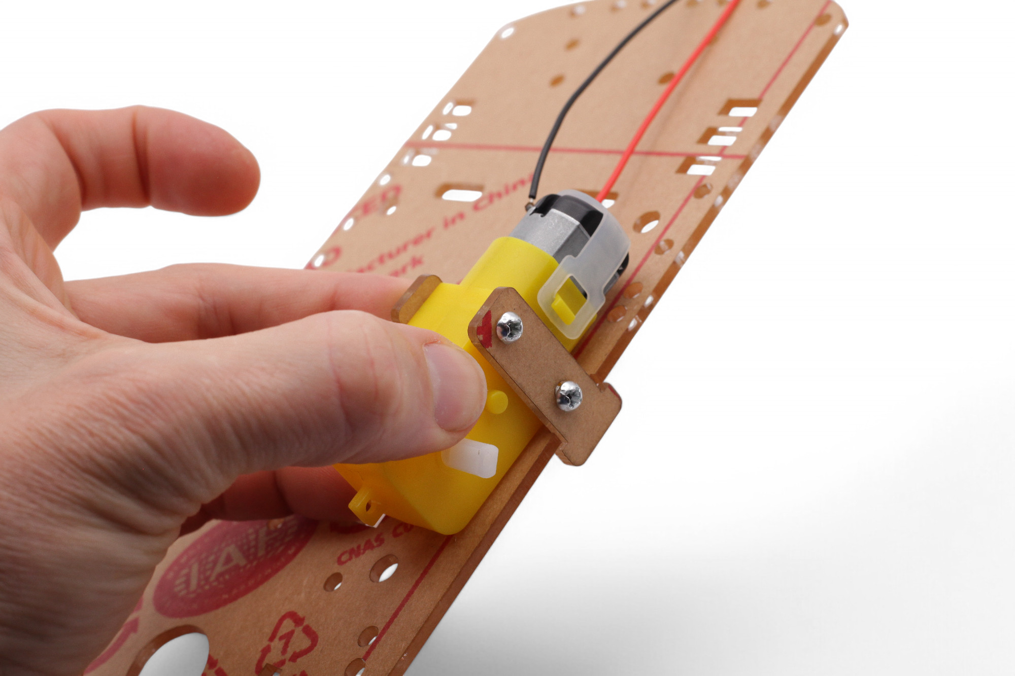 Beginne wir mit einem Motor. Dieser Vorgang erfordert etwas Fingergeschick. Gib nicht auf, du schaffst das!