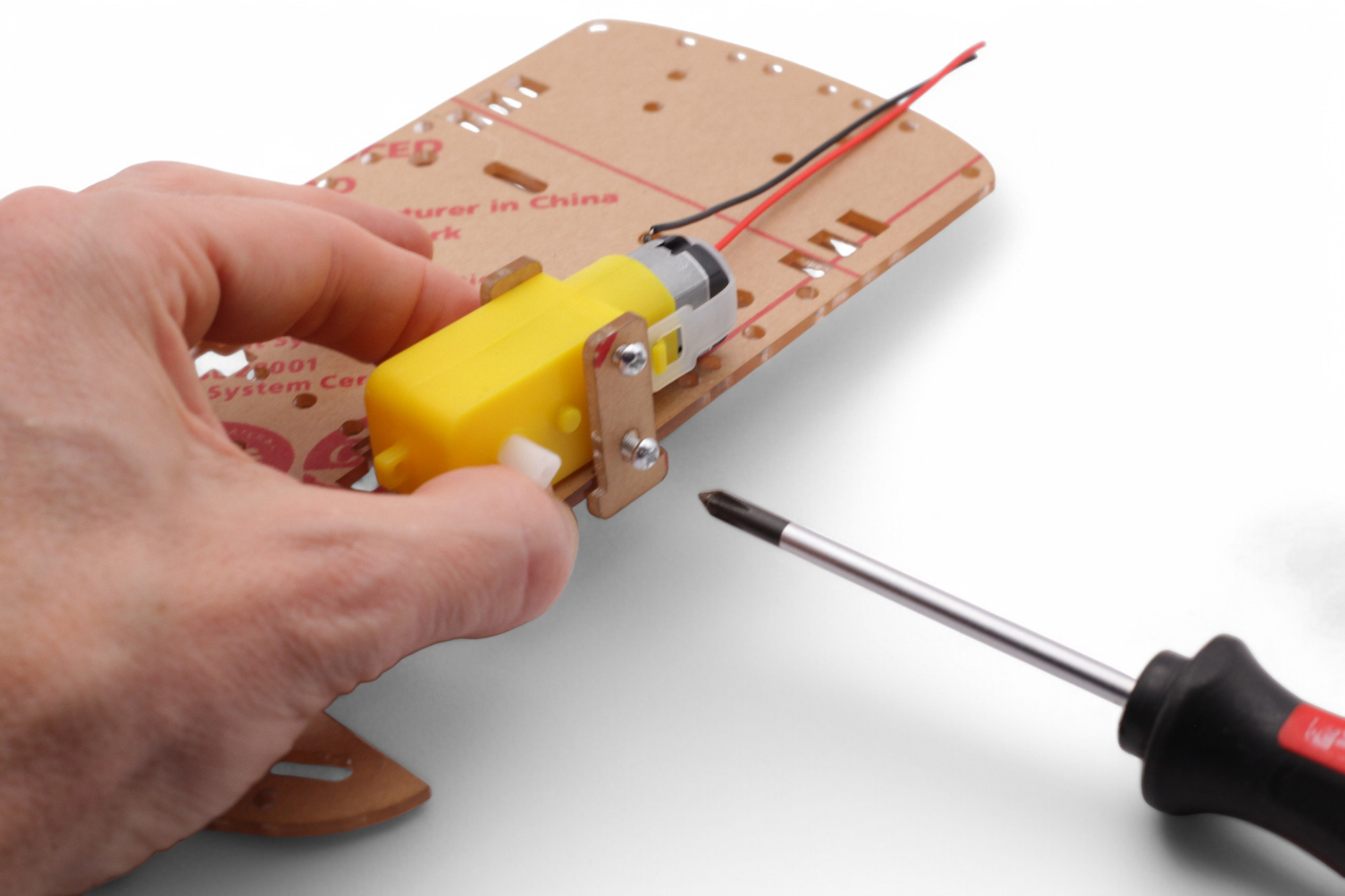 Wiederhole den Vorgang mit dem schwarzen Kabel und dann mit dem zweiten Motor.